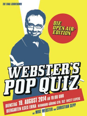 Nu isses soweit, das vorerst (man beachte die zeitliche Einschränkung *knickknack*) letzte Popquiz steht an! Und wie es sich für den Sommer gehört, begehen wir dies unter den luftigen Bäumen des Ilses Erika Biergartens - free your mind und so. In drei Vorrunden spielen wieder 9 Kandidaten um den Einzug ins grande finale.