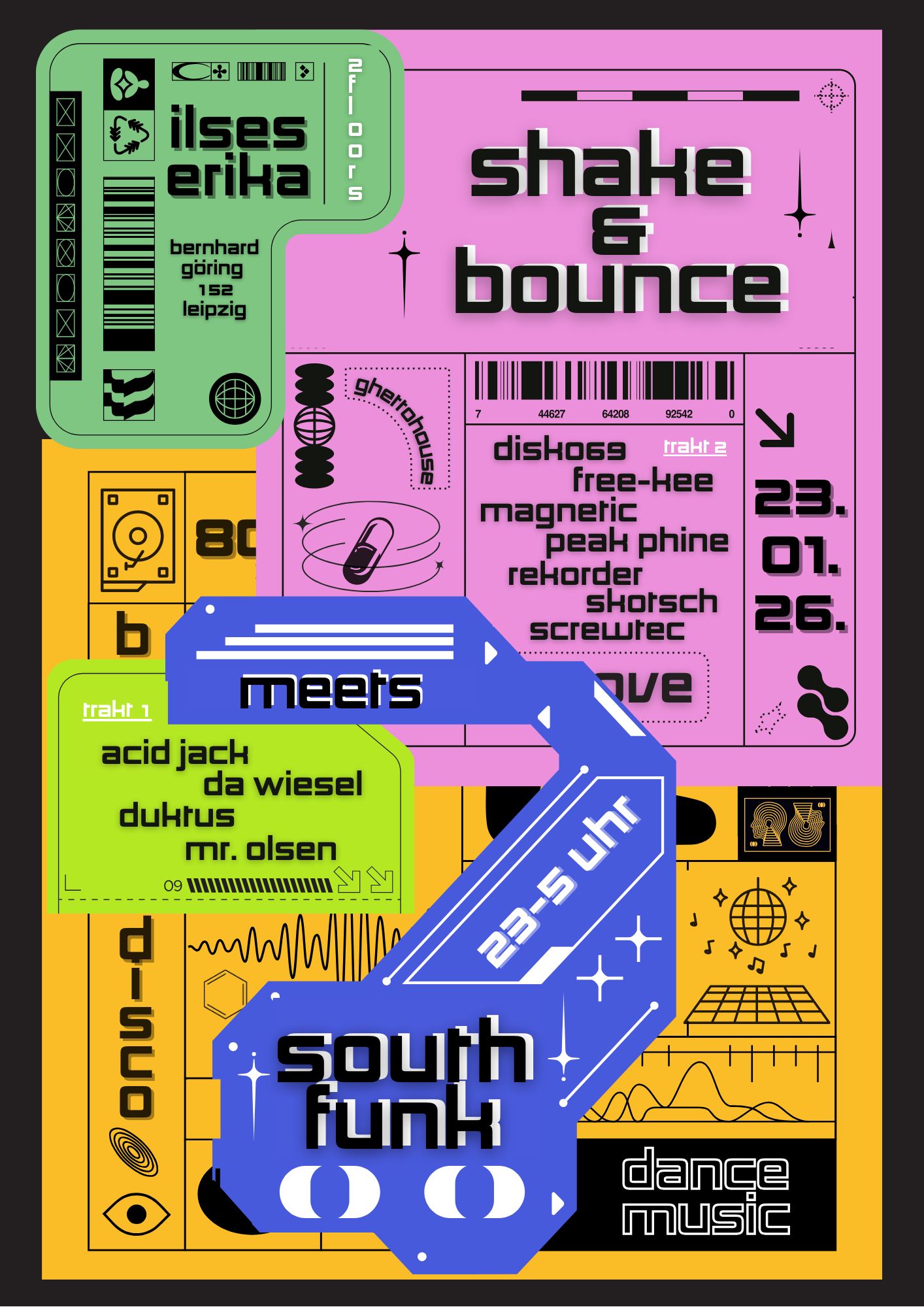 Der zweite Floor gehört der Shake & Bounce Crew – ein Zusammenschluss alter Underground-Gesichter, die wissen, wie man Räume zum Kochen bringt.