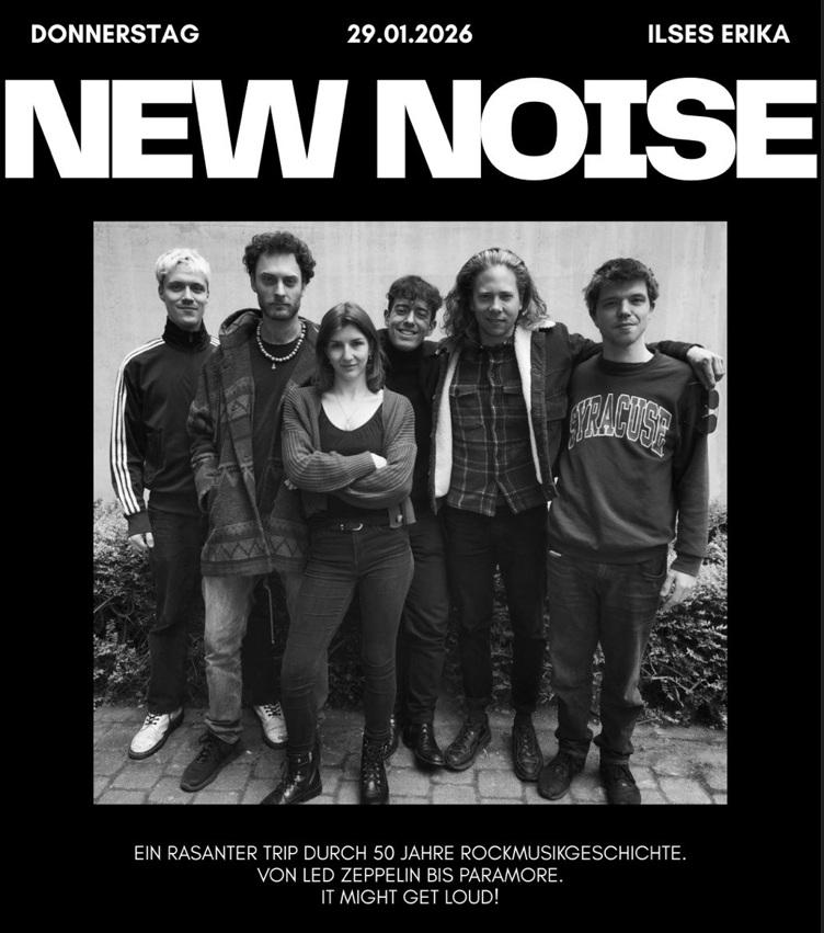 Mit NEW NOISE erlebt ihr einen rasanten Trip durch die reichhaltigen Spielarten und Stile der Rockmusikgeschichte mit Songs u.a. von Led Zeppelin, Deep Purple, Dire Straits, ZZ Top bis hin zu Deftones, Paramore, Muse und Refused.